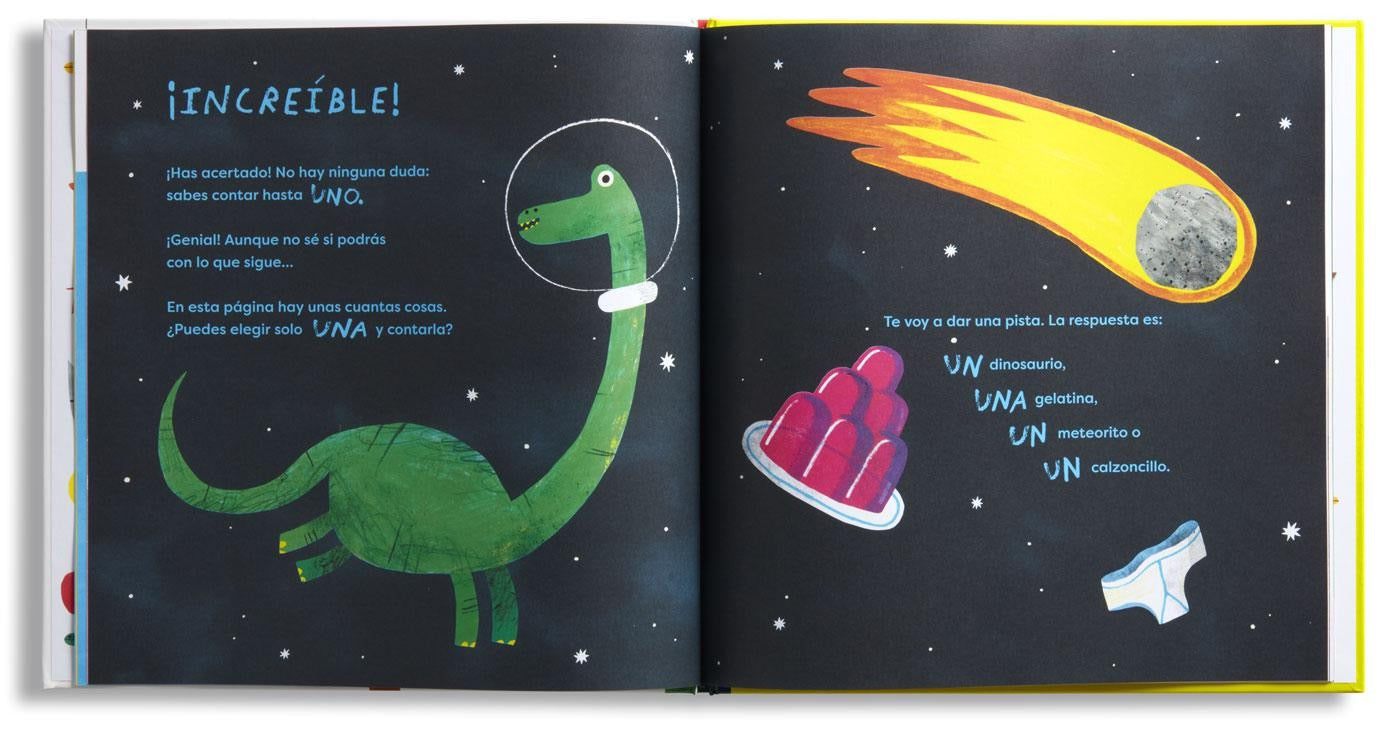 Este libro tiene un narrador muy mandón que da a los pequeños lectores una única instrucción: tienen que contar hasta uno. Pero solo hasta uno, ¡nada más!